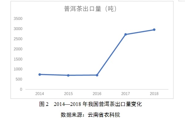 (四)出口國別多元化。2017年以來,我國普洱茶出口量較2014—2016年顯著增加,并呈繼續(xù)增加趨勢。2017年,我國普洱茶出口量2717.3噸,2018年我國普洱茶出口量2953.5噸。