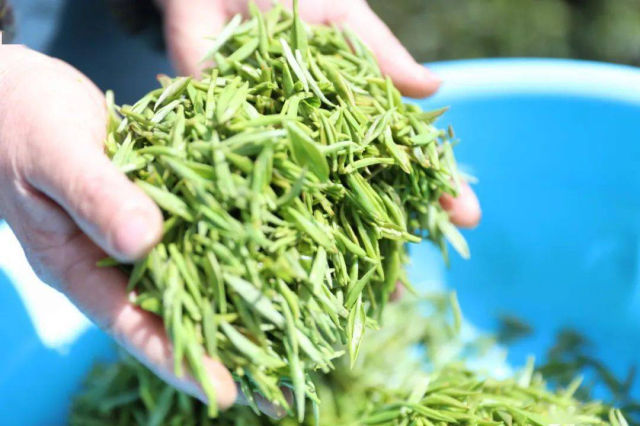 “因為離家比較近,所以每年采茶的時候我都會來。老板以每斤40元的價格進行收購,中午的時候還發(fā)面包和水。”肖書琴一邊熟練地采摘著嫩綠的茶葉,一邊笑著說。采茶只能掐枝葉上的一點點嫩芽,所以采一斤茶需要大半天的時間。